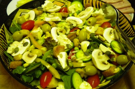 Serve with a simple dressing of balsamic vinegar and olive oil, or a low fat commercial salad dressing, and crusty bread or rolls.